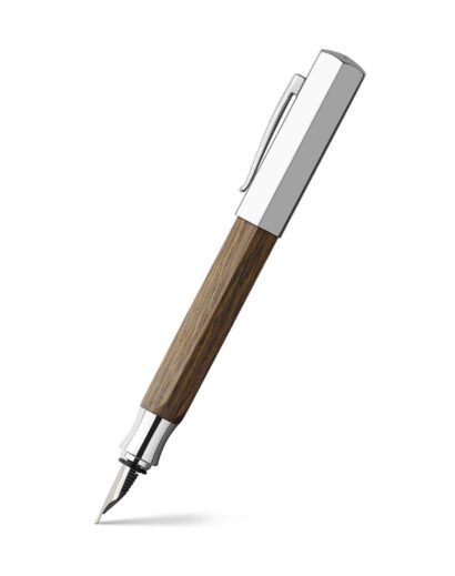 Hexagonal barrel made of smoked oak End cap and tip made of chrome-plated polished metal Spring-loaded clip made of chrome-plated polished metal Detachable metal cap High-quality stainless steel nib in width M (medium) Equipped with a cartridge/converter system Fitted with a converter Cartridges in different colours available separately White gift