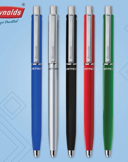 Smooth writing and unbeatable reliability Classic design that never goes out of style Superior retractable mechanism Laser tip in 0.7mm for bold accuracy 10 blue Jetter pens in an array of classic barrel designs